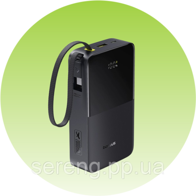 Технические характеристики внешнего аккумулятора Baseus Bipow 2 Pro Power Bank 20000 мА·ч, 22,5 Вт, цифровой дисплей, встроенный кабель USB-C, черный