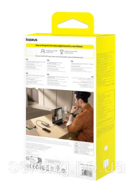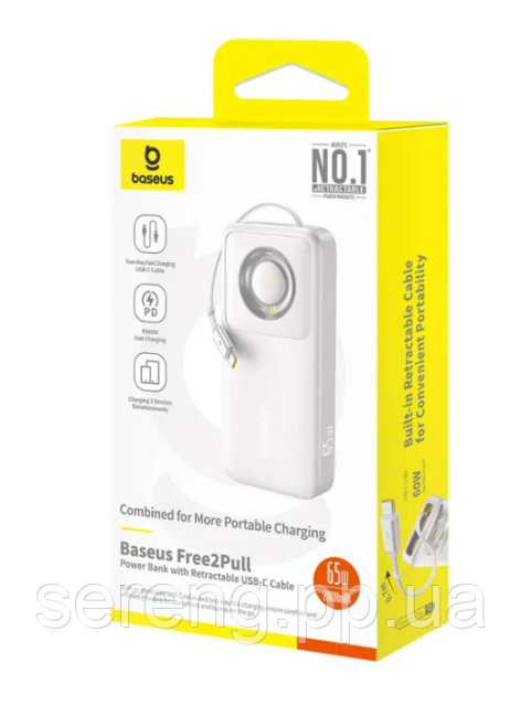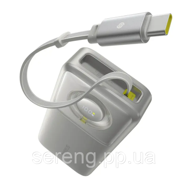 Технические характеристики внешнего аккумулятора Baseus Free2Pull 20000 мА·ч, 65 Вт, со встроенным кабелем, серый