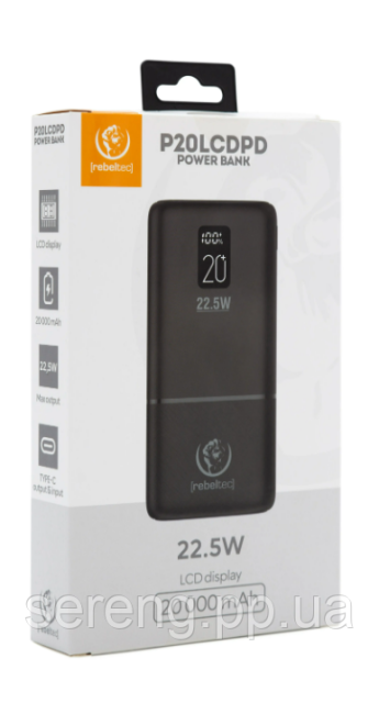 Технические характеристики внешнего аккумулятора Rebeltec P20 LCDPD 20000 мАч 22,5 Вт Black