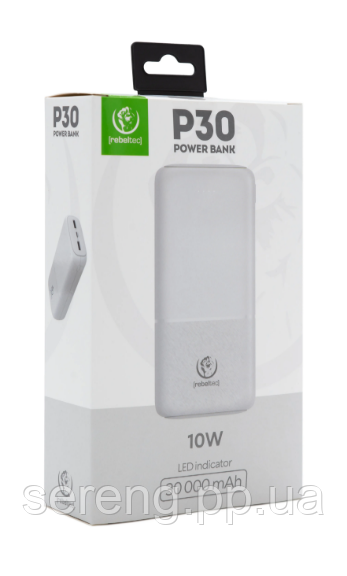 Технические характеристики внешнего аккумулятора Rebeltec P30 30000 мАч 10 Вт, белый
